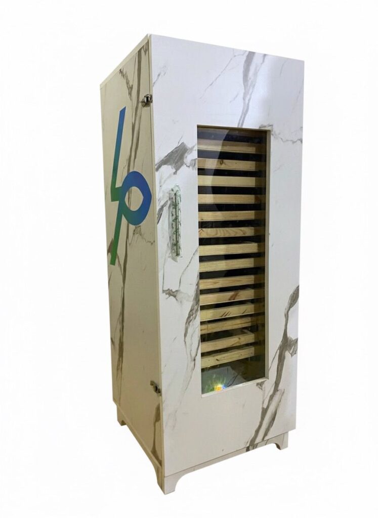 The beekeepers can control and monitor the smart pollen dryer remotely via a mobile app. It contains 5 shelves/racks and its capacity is 0.7 kg.